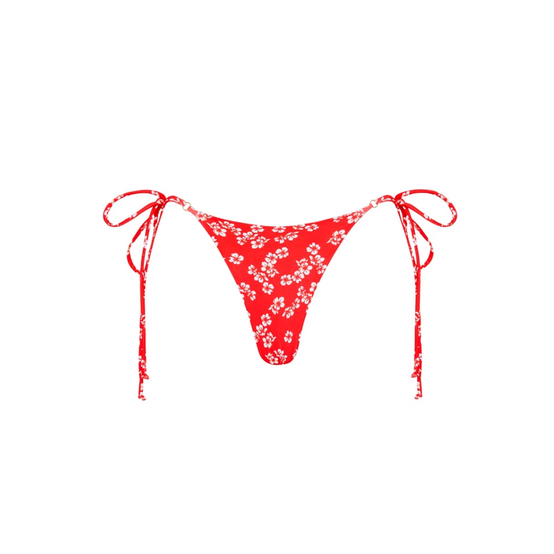 Our Aloha Punch Thong Tie Side Bikini Bottom features:
