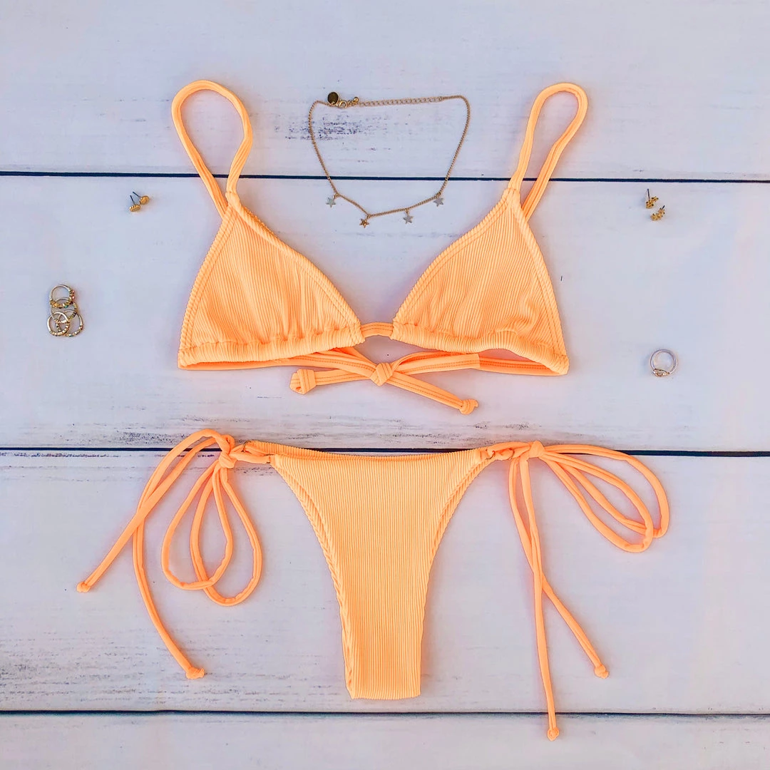 In these photos Mango Ribbed Bralette Bikini Top is matched with Mango Ribbed Thong Tie Side Bikini Bottoms. This matching style and some of our ‘Perfectly Paired With’ suggestions are featured below!