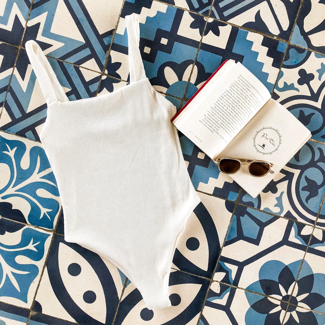 Our White Ribbed Cheeky Level One Piece Swimwear features: