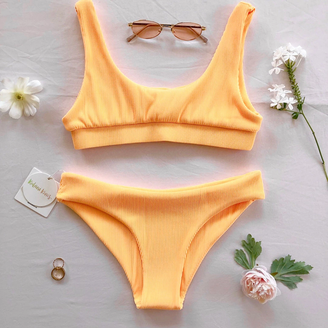 In these photos Jami-Lee has matched the Mango Ribbed Full Coverage Bikini Bottoms with size small in Mango Ribbed Crop Bikini Top. This matching style and some of our ‘Perfectly Paired With’ suggestions are featured below!