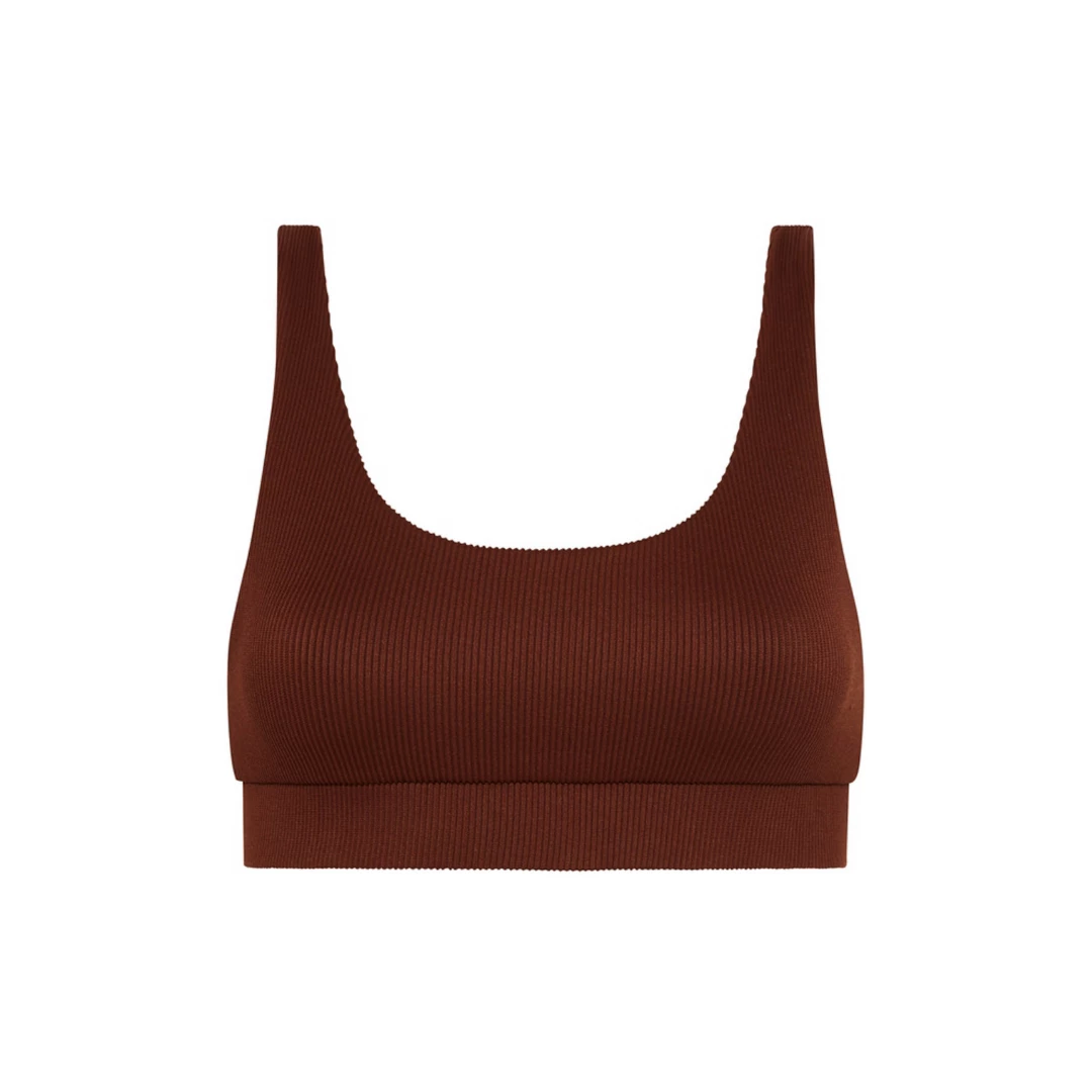 Our Espresso Ribbed Long Crop Bikini Top features: