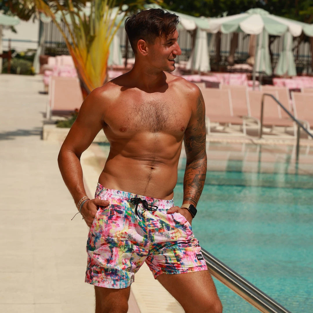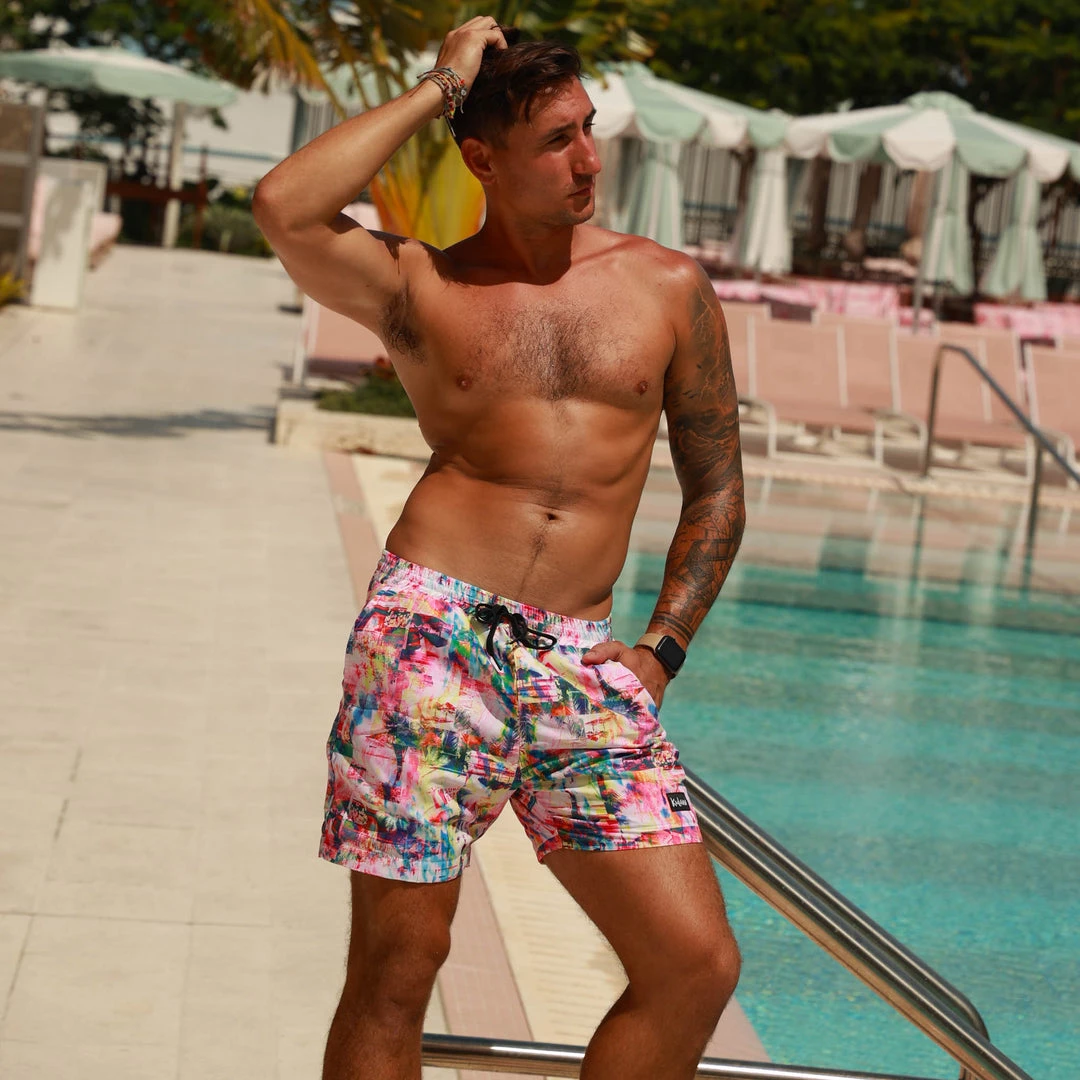 Crystal clear water, sunshine, and colourful cocktails.. it’s go time!! Enjoying every moment of Spring Break in our rainbow watercolour photograph print. Dive into Kulani Kinis newest addition.. Men’s Board Shorts!! Perfect for beach days, barbecues, and summer living!Â