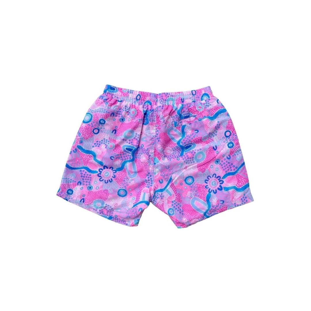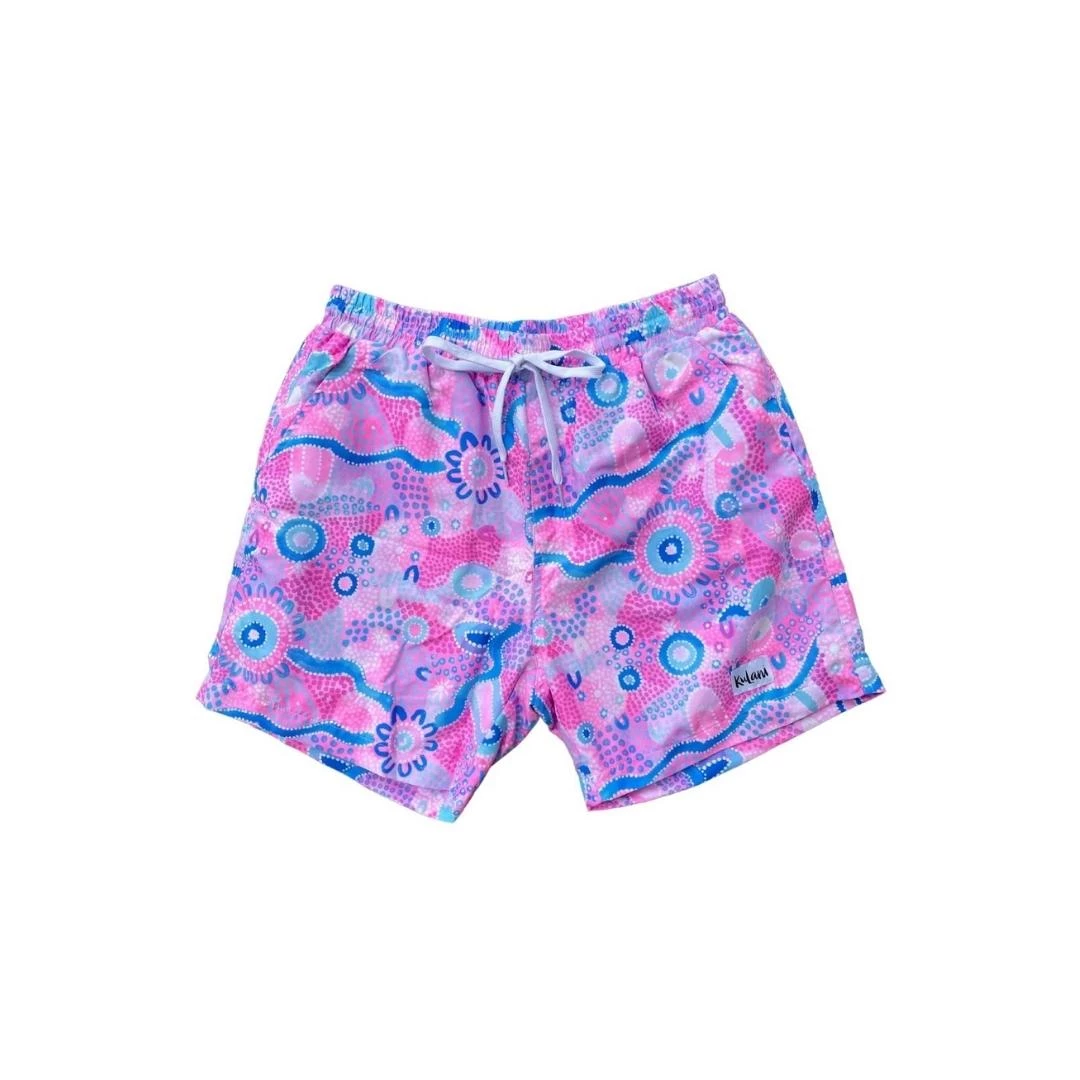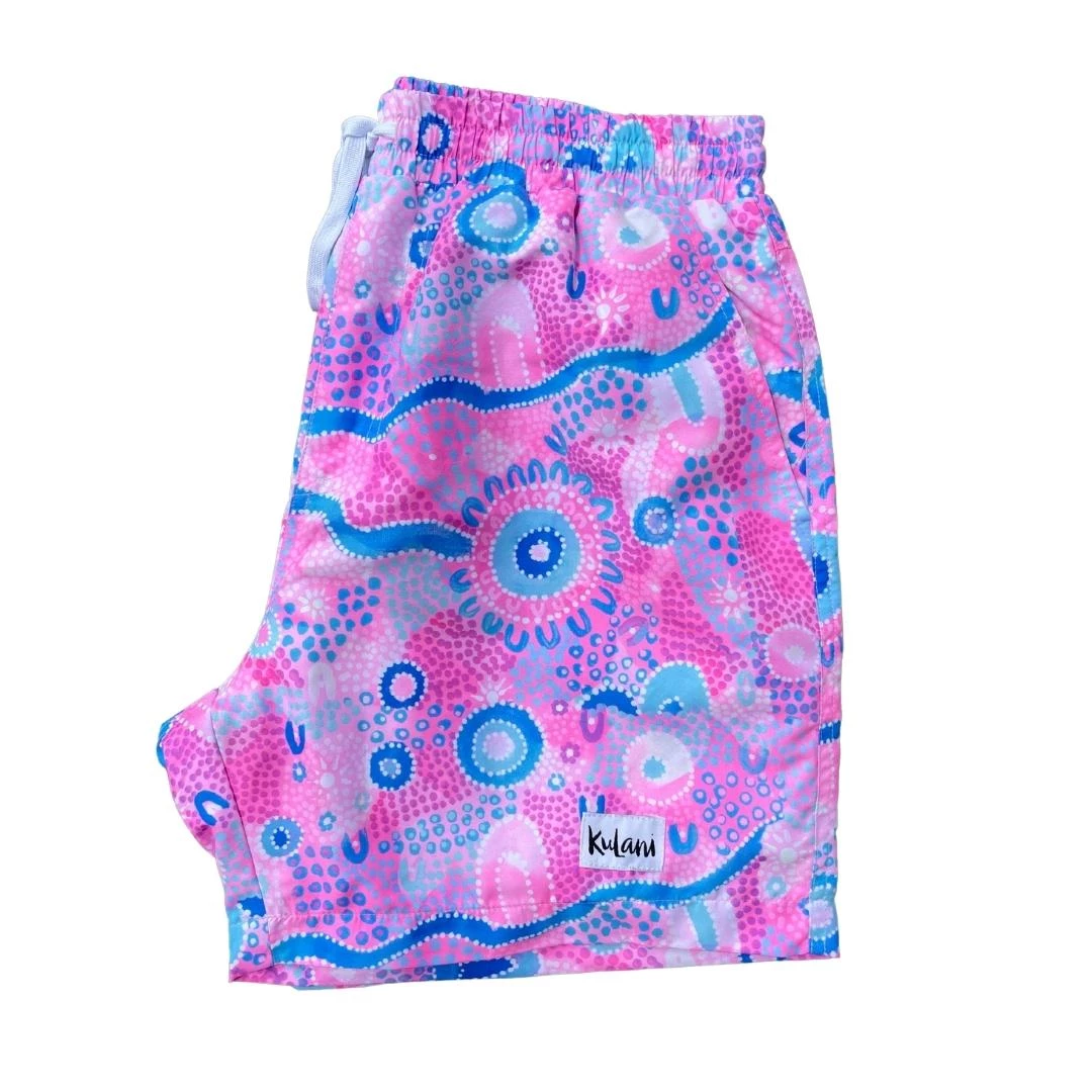A very special Kulani Kinis collaboration with Caitlyn Davies-Plummer, a proud Barkindji woman who lives and works on Kaurna Country (Adelaide). She takes her inspiration from her connection to the Barkaa (river) and the land surrounding that area. Caitlyn paints intuitively and feels the presence of her ancestors every time she picks up the paintbrush. We are honoured and privileged to share her culture with our Kulani family.