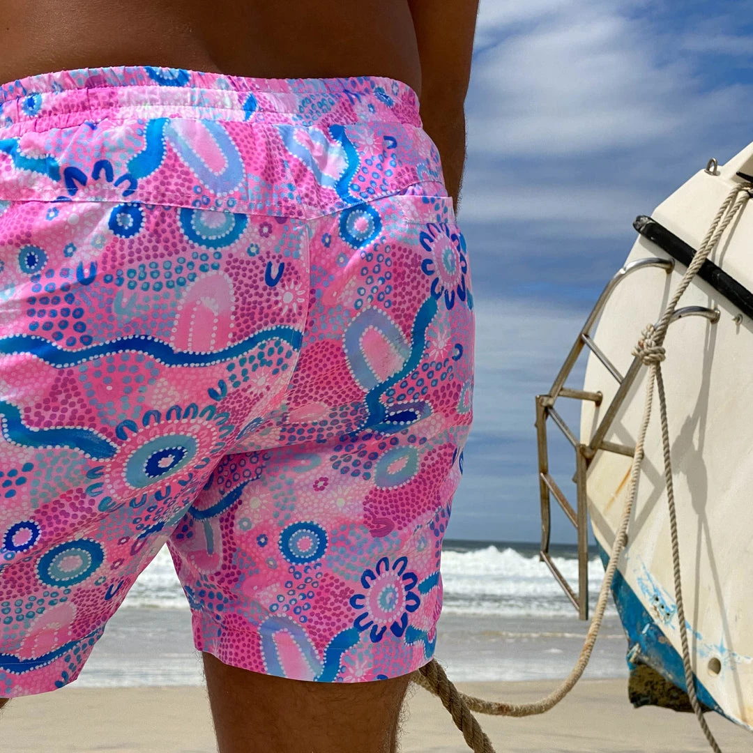 Our ‘Sophie Skies’ Men’s Swim Trunks feature: