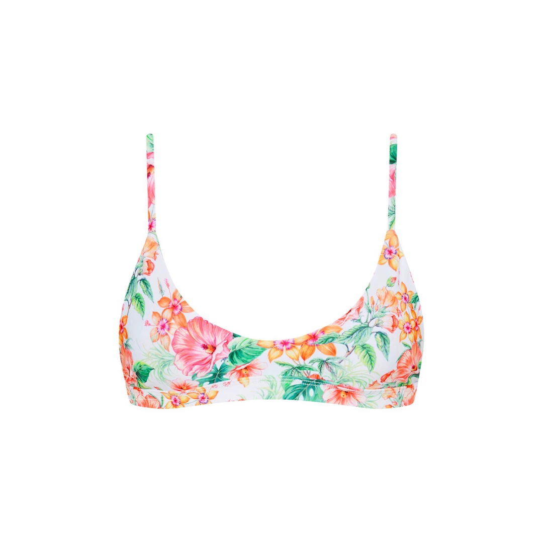 Looks as sweet as a warm summer’s day with vintage Hawaiian florals at play. Trickled in hues of peachy pinks and tropical greens on a white base, she lives in the now and loves a good chase.