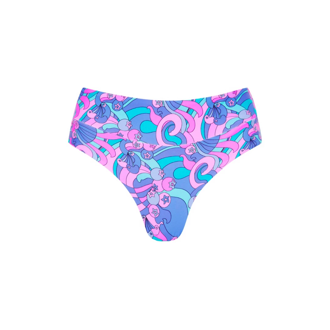 Our Razzleberry High Waist Cheeky Bikini Bottom features: