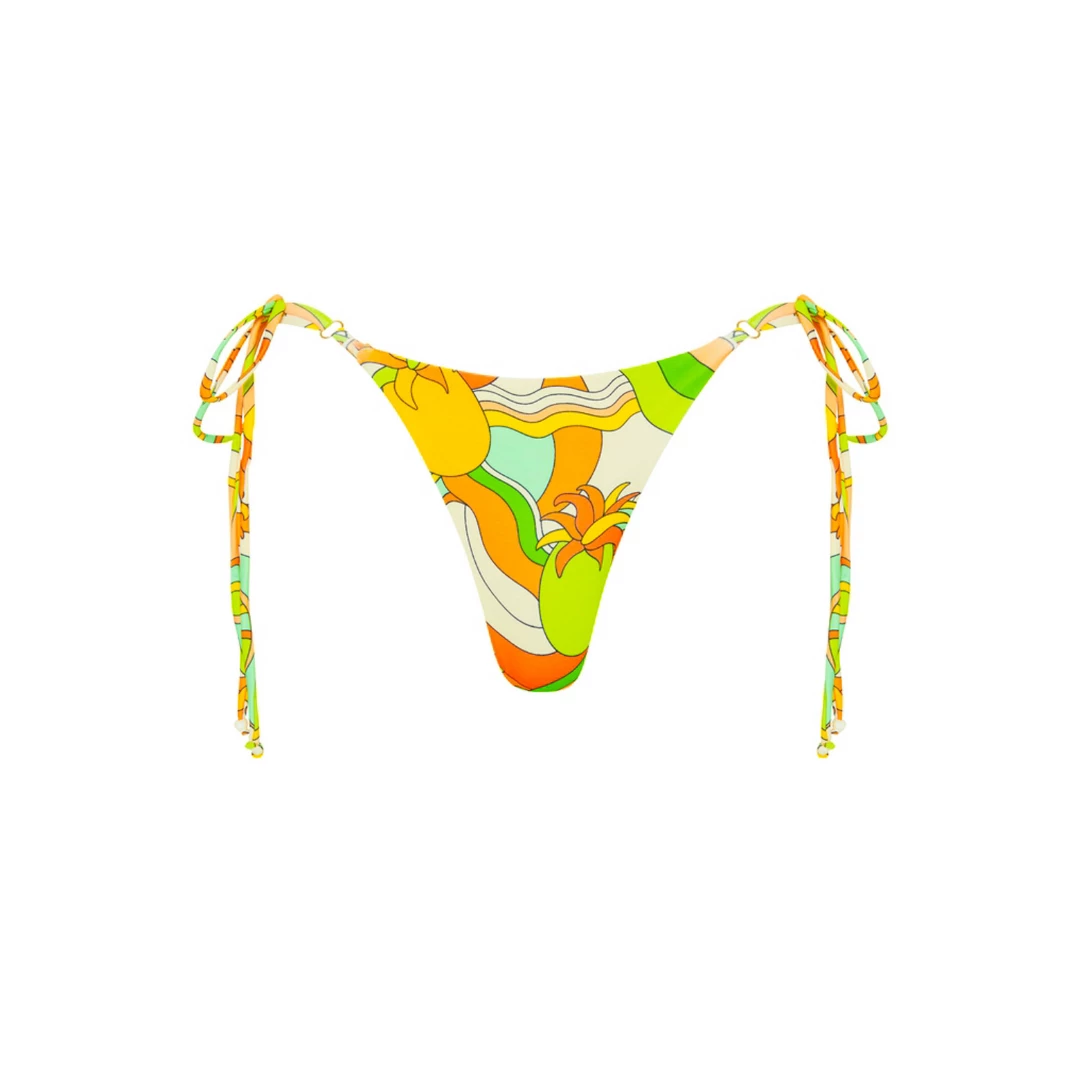 Our Banana Cabana Thong Tie Side Bikini Bottom features: