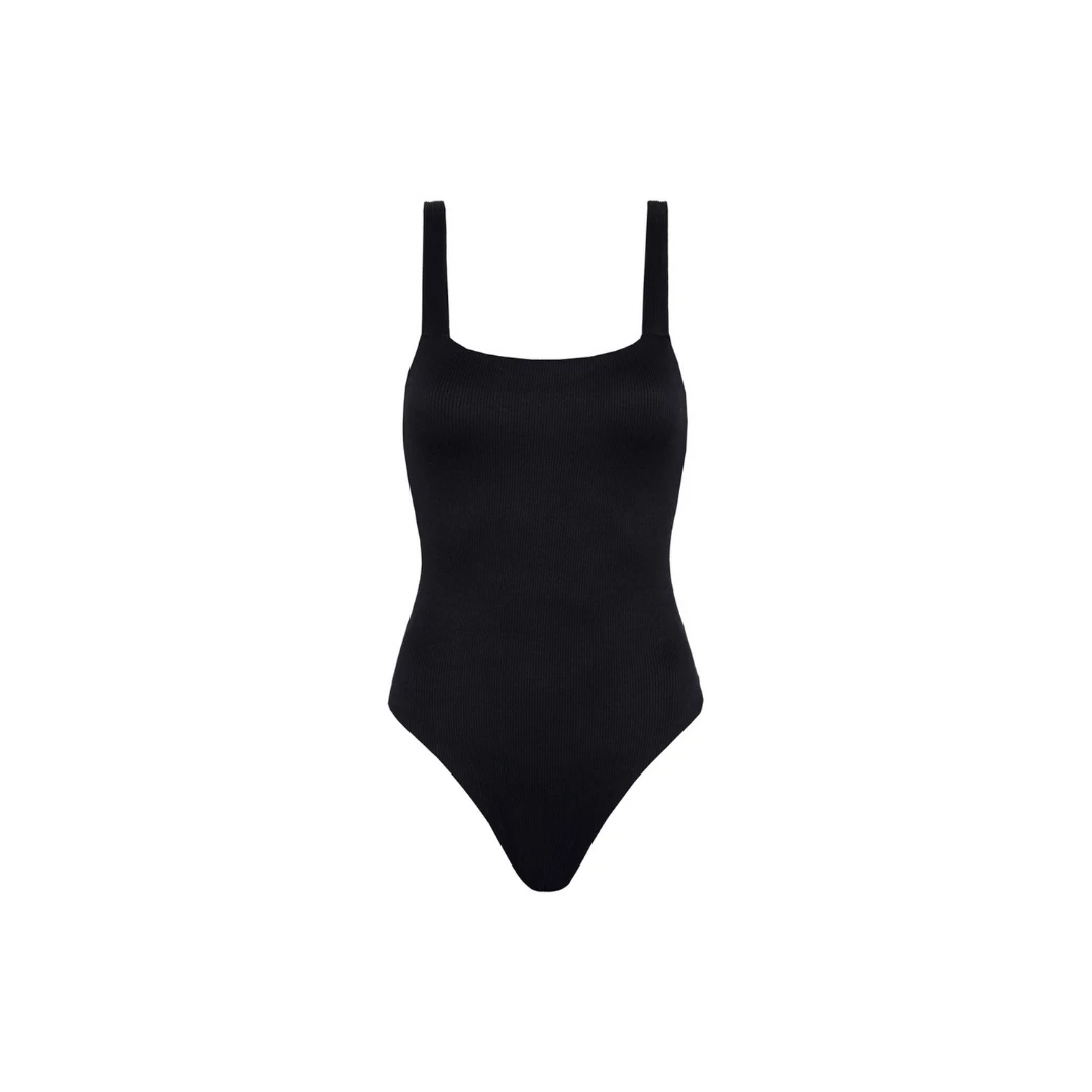 Our Pitch Black Ribbed Cheeky Level One Piece Swimwear features: