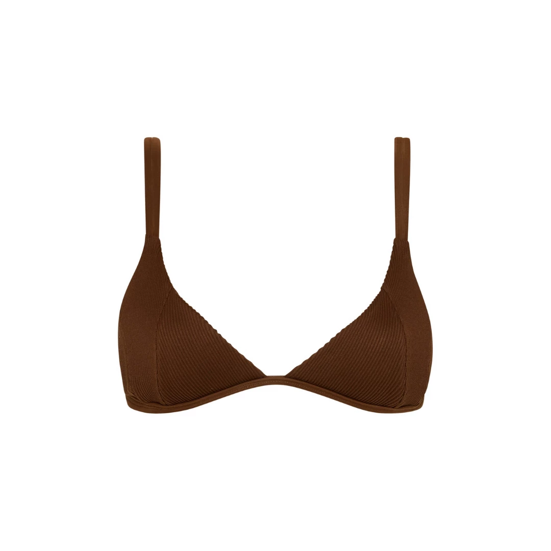 Our Espresso Ribbed Scoop Triangle Bikini Top features: